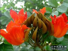 植物名:火焰木。 科属:紫葳科火焰树属。 学名:Spathodea campanulata. 别名:火焰树、喷泉树、火烧花。 火焰木形态:常绿大乔木,株高10~20米。树干直立,灰白色。叶为奇数羽状复叶,...